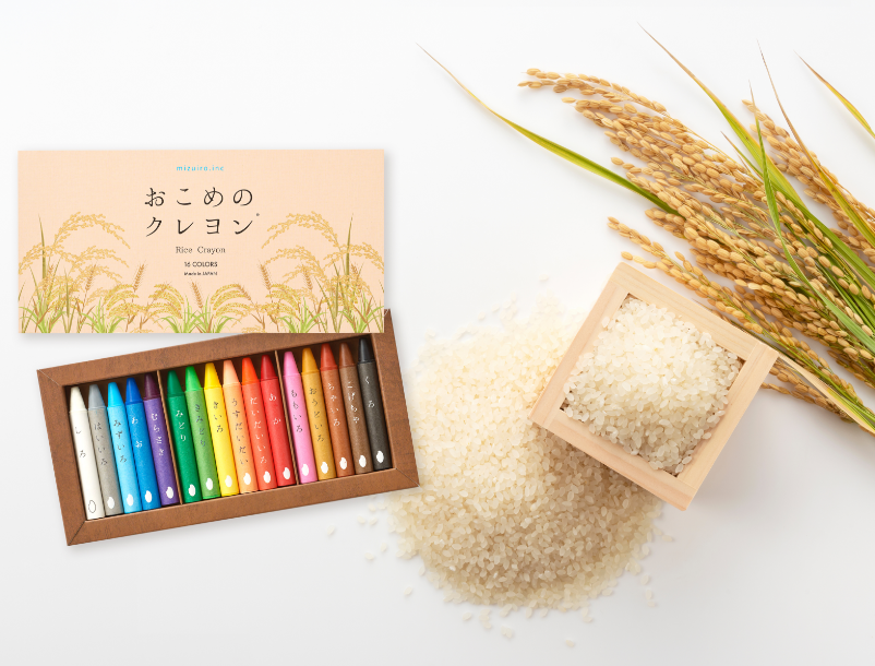 Diese leuchtenden, pflanzlichen Wachsmalstifte werden aus Reiskleieöl und Reiswachs hergestellt, die aus der beim Polieren von Naturreis anfallenden Reiskleie upgecycelt werden.